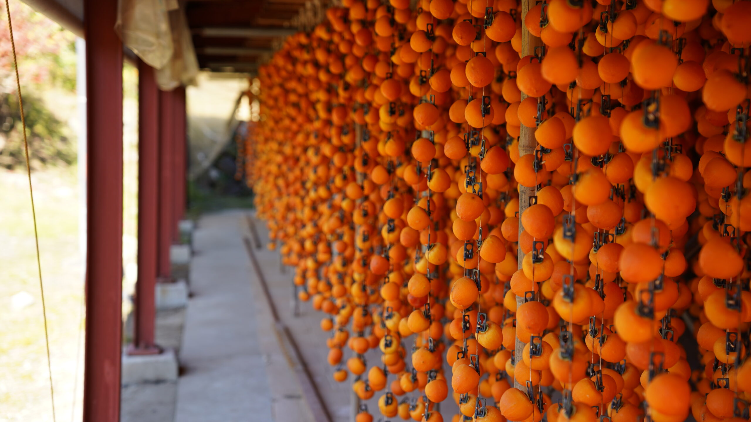 大正10年(1921年)、旧市田村の農家たちは、地元の渋柿を「市田柿」と名づけ、市場へ出荷を始めました。 それまで「焼柿」と呼ばれていた在来の柿が、このとき正式にブランド名を得たのです。東京や名古屋、大阪といった都市部の市場で高い評価を受け、南信州の特産品として知られるようになりました。 この頃には、皮をむいた柿を縄で吊るし、自然乾燥させる「柿すだれ」の風景が村のあちこちで見られるようになり、冬の風物詩として定着しました。